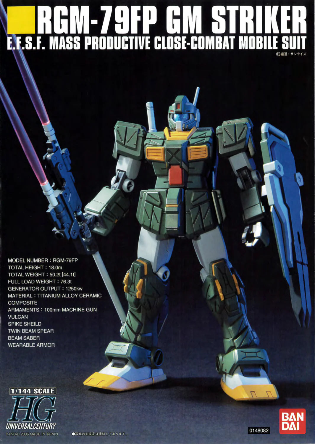 Based on Mobile Suit Zeta Gundam, this RGM-79FP GM Striker model kit is in 1/144 scale and becomes a fully articulated figure once built.