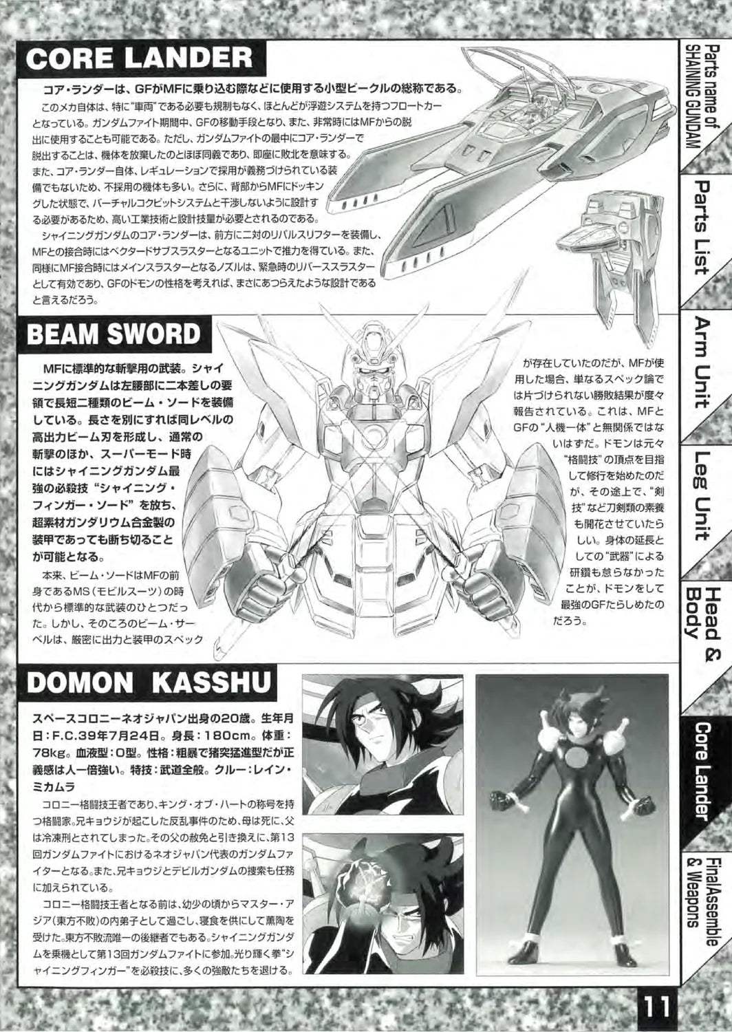 Based on Shining Gundam's Normal Mode, this model kit comes with Bandai's action frame skeleton, which allows a much greater range of action poses than previous models. It also comes several additional parts and weapons, including a translucent hand to represent Shining Finger.