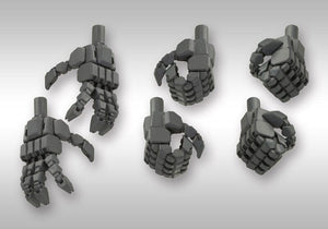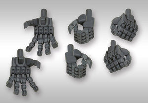 A brand new design is joining the HAND UNIT lineup, the series that play a major part when creating original robot models! HAND UNIT MB40 WILD HAND features a tough, powerful design that includes a set of three different designs for both the left and right hand: Closed, Weapon Holding, and Open. Users can decide to attach these units using the standard Frame Arms series 3mm joints or 3.5mm ball joints.