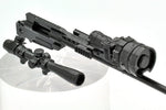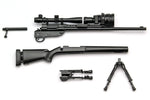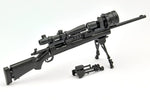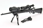 It also comes with a 1/12-scale M24SWS with MARS specifications -- a custom version of the M24SWS bolt-action sniper rifle. A long rail known as MARS is equipped with a clip-on NV; the model reproduces the real gun as faithfully as possible. The bipod can be opened and closed, and bolt action is possible too. The length of the stock pad is selectable; the daytime scope and night-vision device are also included, as are a pair observer and spotting scope. The items are interchangeable if not glued into place.