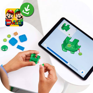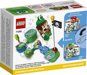 Fans can add leaping, splashing fun to their LEGO® Super Mario™ play experience with this Frog Mario Power-Up Pack (71392). It features an interactive frog suit for LEGO® Mario™ (figure not included), which gives the player a chance to earn extra digital coins for making him jump, and triggers splashing sounds each time he lands. This set is an ideal gift for trend-setting kids who own the LEGO Super Mario Starter Course set 71360, which includes LEGO Mario, or the 71387 set which includes a LEGO® Luigi™ figure. Build and play Building instructions for this LEGO set can be found in the box and on the free LEGO Super Mario app. The app is a safe forum for kids to share ideas and offers tips for creative ways to build and play. Real-life Super Mario action Collectible LEGO Super Mario toy playsets bring an iconic Super Mario character into the real world. The Starter Course, Expansion Sets and Power-Up Packs allow fans to create their own challenging levels for solo or group play.