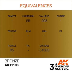 AK Interactive Bronze Metallic 3G Acrylic Paint 17ml Bottle