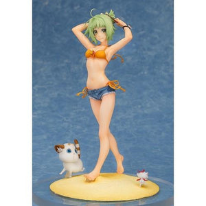 The healthy looking curves of her body, cute orange bikini top and denim short pants have all been intricately sculpted, and the base also brings out the atmosphere of the series with a sandy base together with the cats Advisor Cha and Ohime circling around her feet! Hikari herself is posed quickly tying up her hair as she looks out to the ocean with a shine in her eyes - you can just imagine the sound of the waves by her side! Be sure to add the beautiful Pikari to your collection!