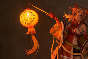 From the popular smartphone game "Arknights" comes a scale figure of Nian in a special outfit for the Lunar New Year. The outfit, chosen by Nian on a whim, is a perfect fit for her! Based on her expression, it looks like she is enjoying the new year, too! The figure's base, similar to the one included with Ch'en: Spring Festival VER., features an upside-down "fu" character, a symbol meant to bring good fortune to every Doctor in the new year! Her lantern can also be displayed lit up. Be sure to add her to your collection, and welcome the new year with Nian!