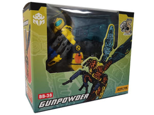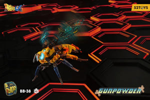 BeastBOX is an original series of robotic-style creatures that transform into cubes. The BB-38 Gunpowder is a robotic wasp creature that stands 5.12 inches tall.