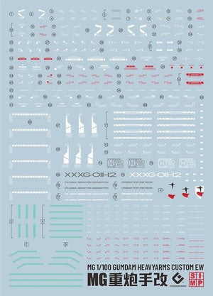 High quality high definition water decal designed for Bandai MG 1/100 Gundam Heavy Arms Custom.