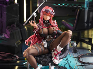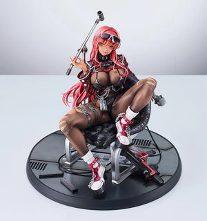 From the popular smartphone game "Goddess of Victory: Nikke" comes a 1/7 scale figure of Volume, a NIKKE affiliated with the Prima Donna squad. Her bold sitting animation from the game has been faithfully captured in figure form. The figure is loaded with eye-popping detail, from her gorgeous body and bare skin, to her torn tights and glittery leather jacket.