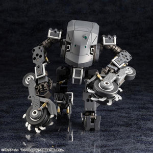 Introducing a new variation on BULKARM α, a unit popular as a customization base for humanoid HEXA GEAR. The bucket arm is unique to non-military units, and the guerrilla warfare black knife and lightweight submachine gun, along with the grayscale coloring of the unit, all work together to expand on the lore of the series.
