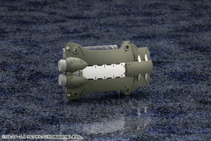 The large melee weapon can be transformed from a mace to a sword. By combining other parts, it can also be transformed into a giant machete-like weapon. The shield can be held using a grip or it can be attached directly to the forearms using HEXA G-R.A.M and 3mm joints, which frees up the unit's hands. In addition, there is a deployment feature for the built-in attack system.