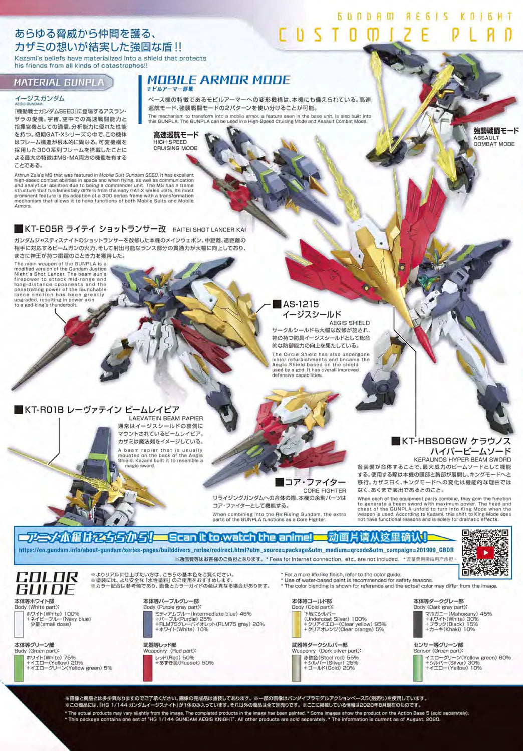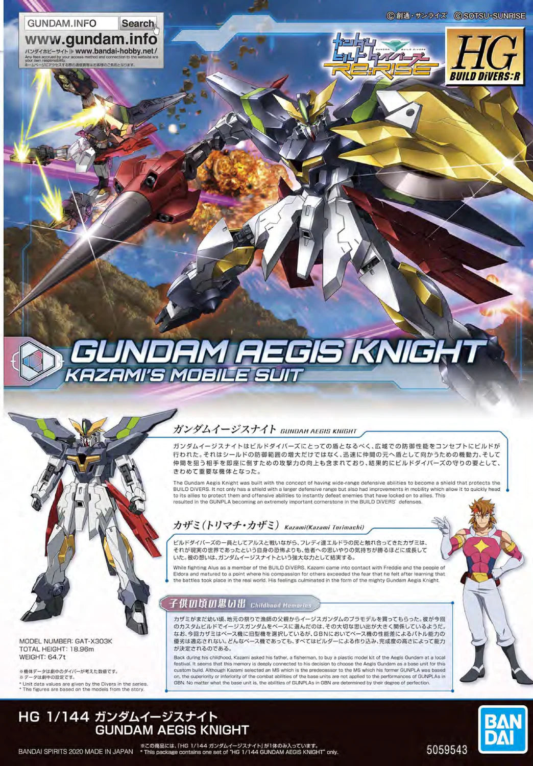 The Gundam Aegis Knight comes in to the action celebrating the release of the Gundam Build Divers Re:Rise's second season on April 9, 2020! This custom GunPla is the successor to the Justice Knight Gundam that appeared in the first season which was built and piloted by Kazami Torimachi.