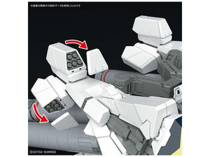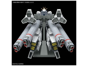 A test type unit created exploring technologies that would eventually lead to the Nu Gundam, the Narrative Gundam from "Gundam NT" is featured here with its A-Packs equipment used in Operation Phoenix Hunt." Narrative features new articulation gimmicks in its construction and features a large amount of detail from molded missiles in the missile pod hatches to large propllant tanks and beam effects. Included are 2 beam sabers, dedicated display stand, stands for its cannons, and effect parts.