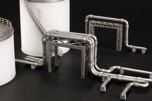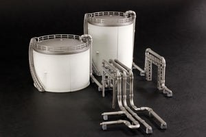 Create an industrial fight scene with your figures using this model kit featuring a storage tank and pipes from the Industrial Area series.