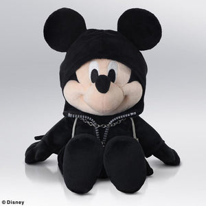Shown wearing his Organization XIII disguise, this plush features a hood that can be pulled back, with working zippers, metal cloak clasp and metal aglets!