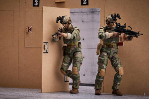 Through fully comprehensive pad printing, a versatile camouflage pattern favored by special forces worldwide has been faithfully recreated (achieved with over 200 pad prints per figure). The exemplary styling of special forces personnel allows for seamless display with weapons from various countries.