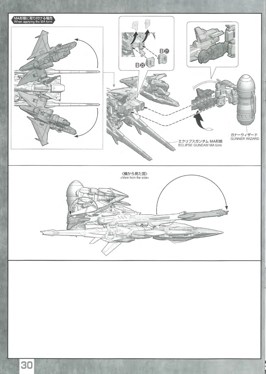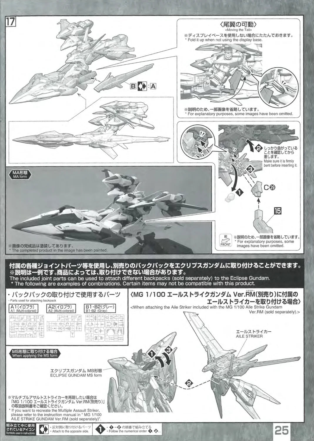 Celebrating the 20th anniversary of Gundam SEED is this transformable Gundam from the new SEED MSV project! A customized M1 Astray utilizing technology “borrowed” from the Freedom that Kira had been using, this Eclipse Gundam was officially mass produced as the Murasame in “Gundam SEED Destiny” and combines the tech of the Earth, Orb, and ZAFT forces allowing its body to be able use the Striker, Silhouette, and Wizard packs. Following the lore, this model kit utilizes portions from the MG Freedom 2.0 including its tri-color motif. Includes rifle that can be changed to a sword form as well as beam shield with effect parts.