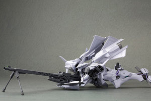 The distinctive Mk.57 Squad Support Gun can be displayed as is with its bipod deployed, and a prone long distance sniping position can be recreated thanks to the model’s extensive range of articulation. In addition to the drum magazine being attachable to the left or right side of the gun, changing the hand parts also allows the weapon to be wielded by the separately sold Shiranui Second models. The Super Carbon blades on the forearms can be moved forward and backward, just like in the series. The large shoulder armor can be freely moved, and as a new feature, the armor can also be used as a shield by extending the arm and adjusting the shoulder armor over it.