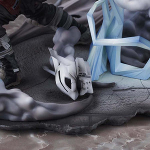 This epic scene features student hero Deku, fighting against the powerful villain Stain. The effects and motion that surround these figures are sculpted in great detail. Standing nearly 12 inches tall, this scene is sure to stand out in any collection!