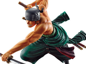 From the anime series One Piece, the Ichibansho Battle Memories Roronoa Zoro about 5 inches tall and is sculpted for battle.