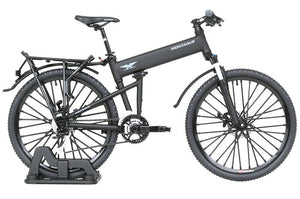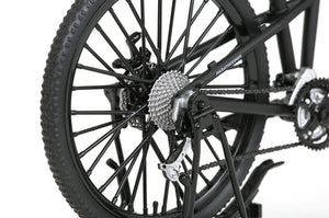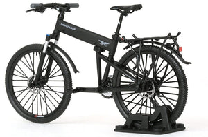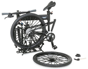 This 1/12-scale model kit features details such as the suspension lockout lever, front and rear dereailleurs and tires reproduced as much as possible; it's finished in matte black for a high sense of stealth! The bike can also fold up just like the real thing.
